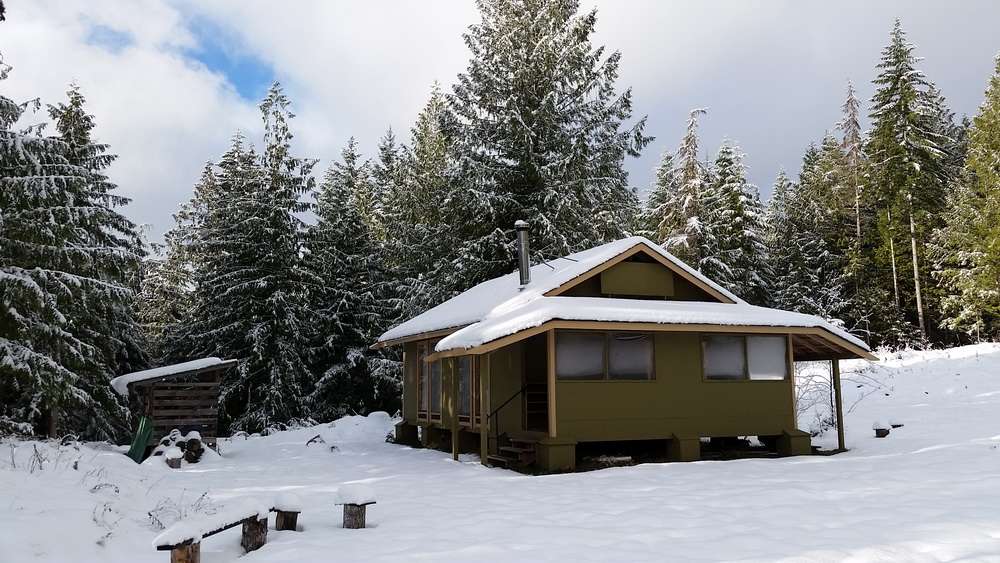 Over a foot of glorious snow this season has hampered use of the Dhamma Hall.  Our good neighbour Randy has plowed the road to the house twice (the 2nd time @no charge!), but not up the hill.  We shut down for a weekend when power lines were down all over the Cowichan region.  See photo of route to the outhouse prior to the 2nd plow.  The rains opened the roads accessing the top of the property allowing an old student to successfully completed a 3 Day self-course around the third week of February.  During his retreat the student  kept the woodstove in the Dhamma Hall going, and we all appreciated the warmer space for our daily group sits.